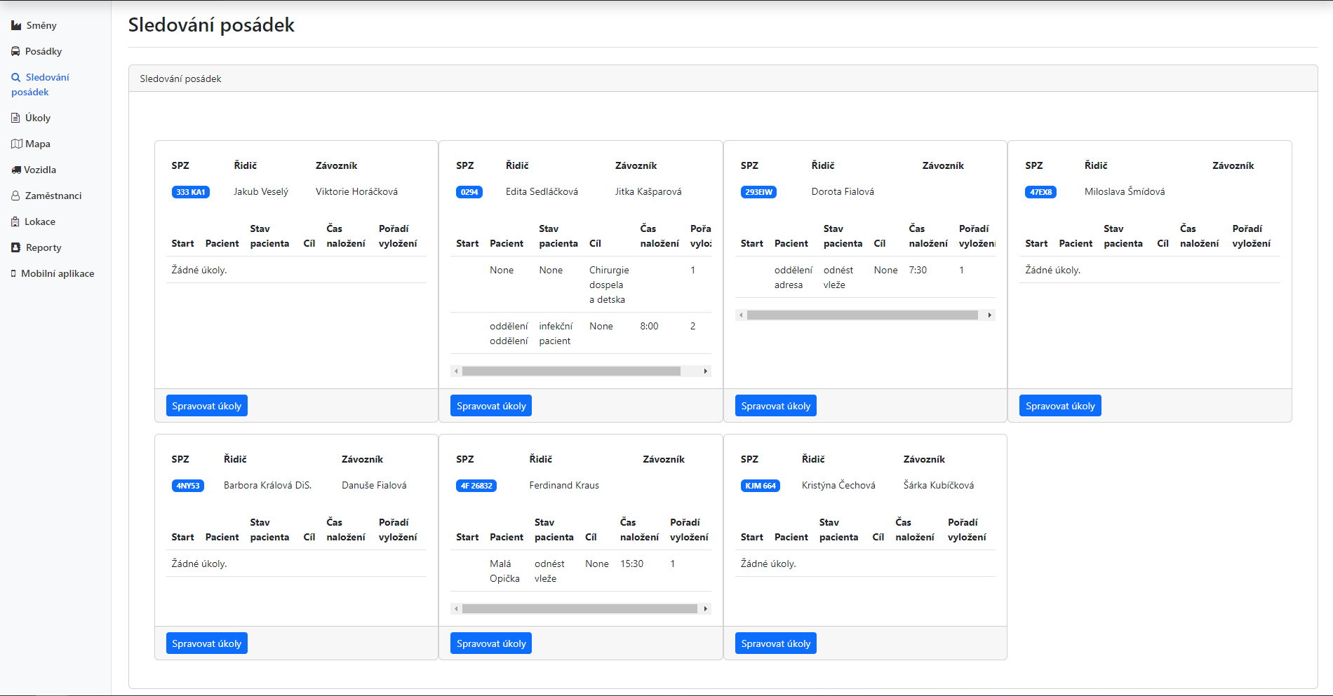 Přehled o stavu a vytížení sanitek, plánování přepravy